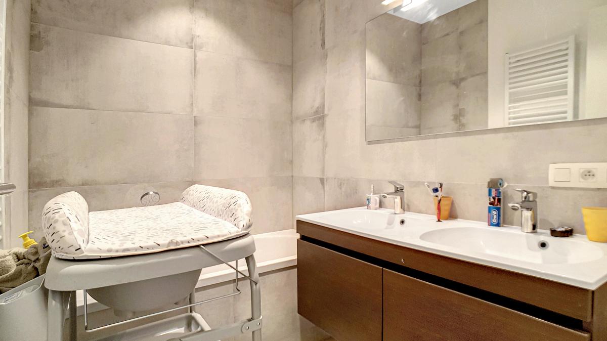 Équipements cuisine : 2 éviers, frigo Siemens, petit congélateur, four Siemens, micro-ondes Siemens, taque vitrocéramique Siemens, hotte Novy, lave-vaisselle Siemens Équipements salle d’eau (aile gauche) : grand placard avec porte coulissante et emplacements pour machine à laver et séchoir, radiateur porte-serviettes, WC suspendu, douche, meuble-évier avec miroir et luminaire Équipements salle d’eau (aile droite) : bain, meuble double évier avec miroir et luminaires, radiateur porte-serviettes Équipements salle d’eau (1er étage) : douche, meuble évier, miroir, radiateur porte-serviettes, WC suspendu
