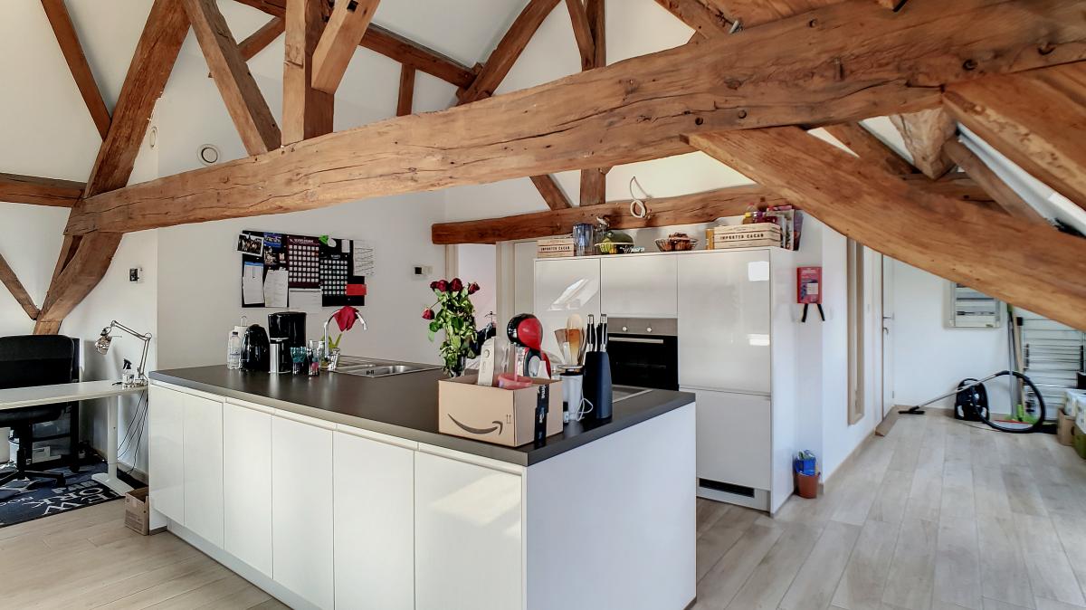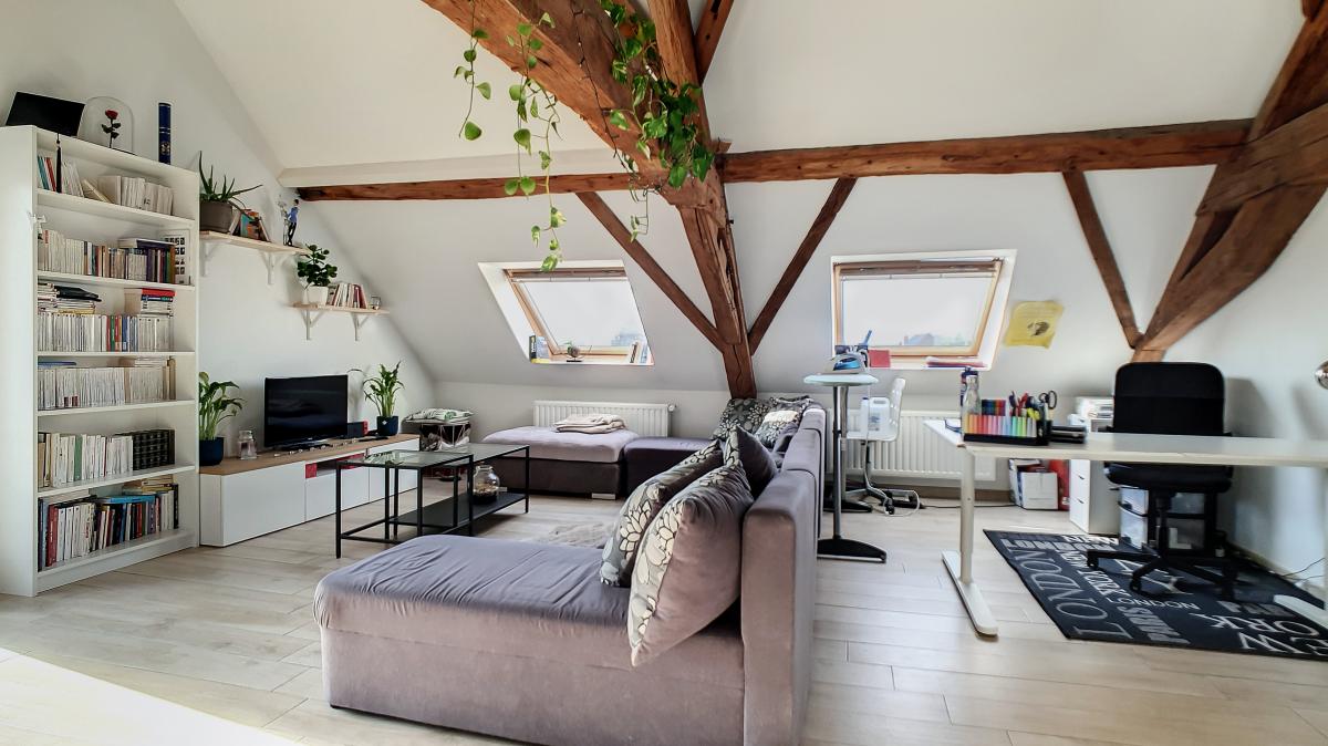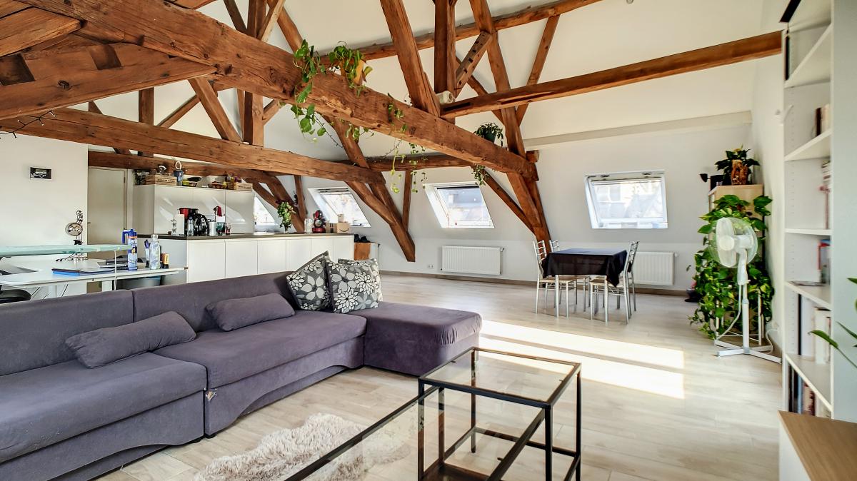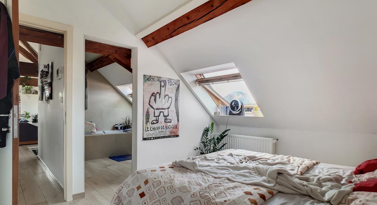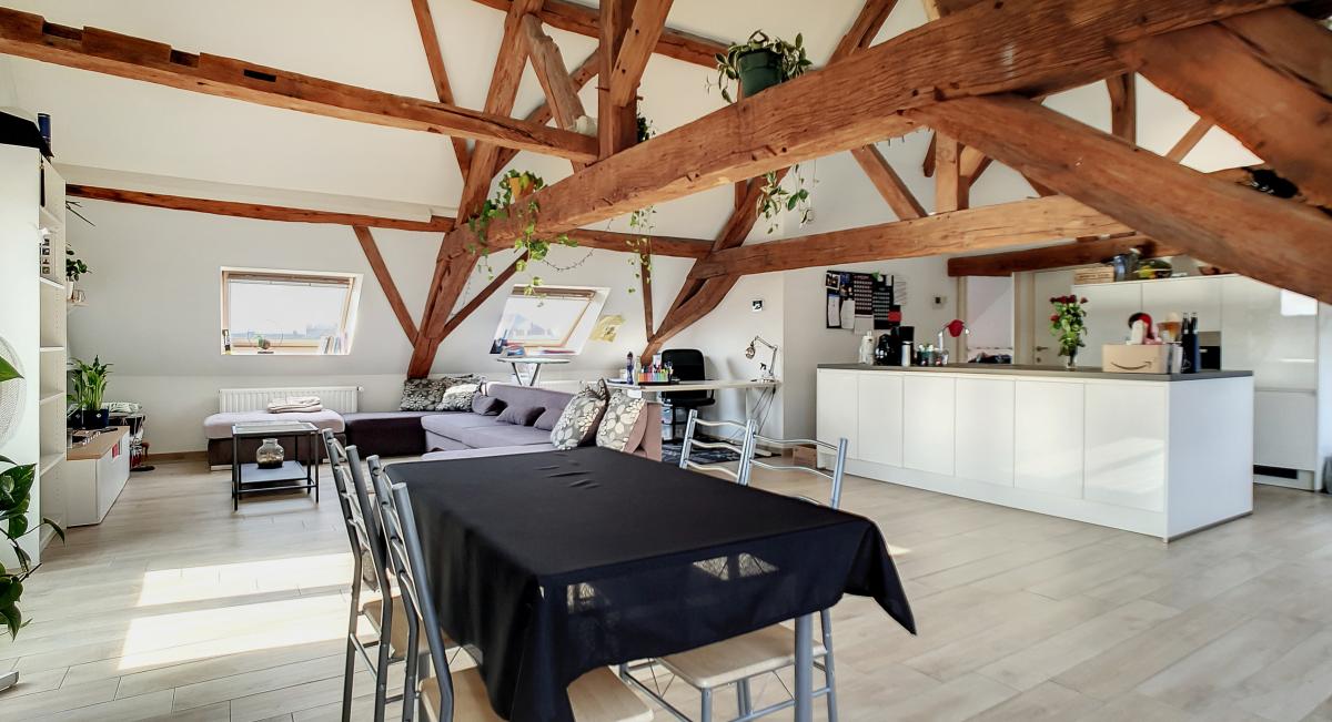 Idéalement situé en plein centre d’Enghien, sur la Place Pierre Delannoy, cet agréable appartement localisé au 3ème étage d’un magnifique bâtiment au cachet indéniable vous séduira à de nombreux égards. Ce nid douillet de +/- 96m² est doté d’un hall d’entrée, d’un grand séjour de +/-65m² avec cuisine ouverte entièrement équipée, d’un WC séparé, d’une chambre à coucher avec mezzanine et d’une salle de bains. En outre, une cave privative au sous-sol de l’immeuble vous offre une surface de stockage supplémentaire de près de 10m². Système de chauffage central au gaz de ville avec chaudière individuelle, double vitrage, système de ventilation, adoucisseur, stores aux velux, parlophone. Bonne performance énergétique : PEB en B ! Ascenseur dans l’immeuble. Loyer : 750 €/mois + 50€/mois de forfait pour les charges communes (comprenant l’électricité des parties communes, l’entretien des parties communes, l’entretien de l’ascenseur). Proximité directe des commerces, gare d’Enghien à +/-750m (train direct vers Bruxelles en +/-20min), autoroute A8/E429 à +/-2.7km (Bruxelles, Tournai, Lille), arrêt de bus à quelques mètres. En outre, le parc d’Enghien se trouvant à à +/-230m à pied, vous pourrez vous balader à votre guise sur ce site remarquable aux mosaïques de plans d’eau et paysages idylliques. Idéal pour les amateurs de jogging !
