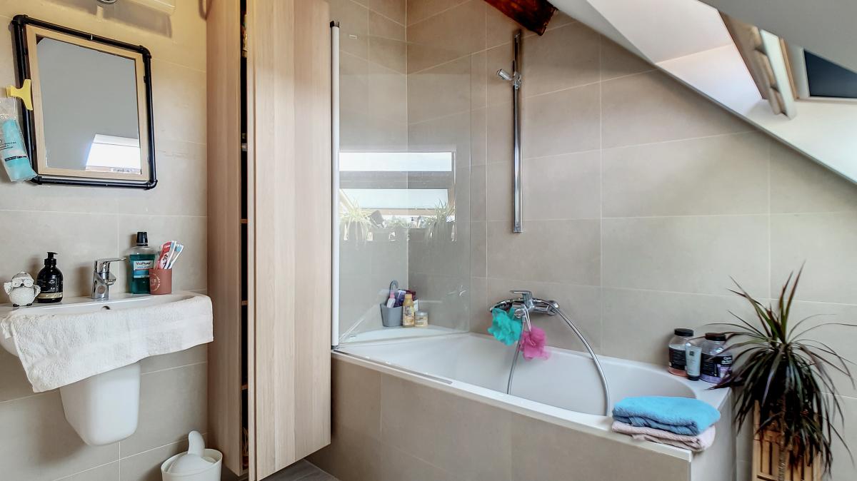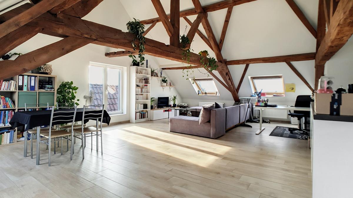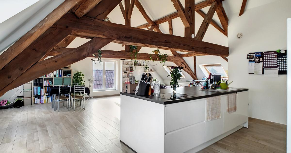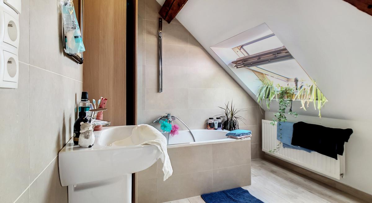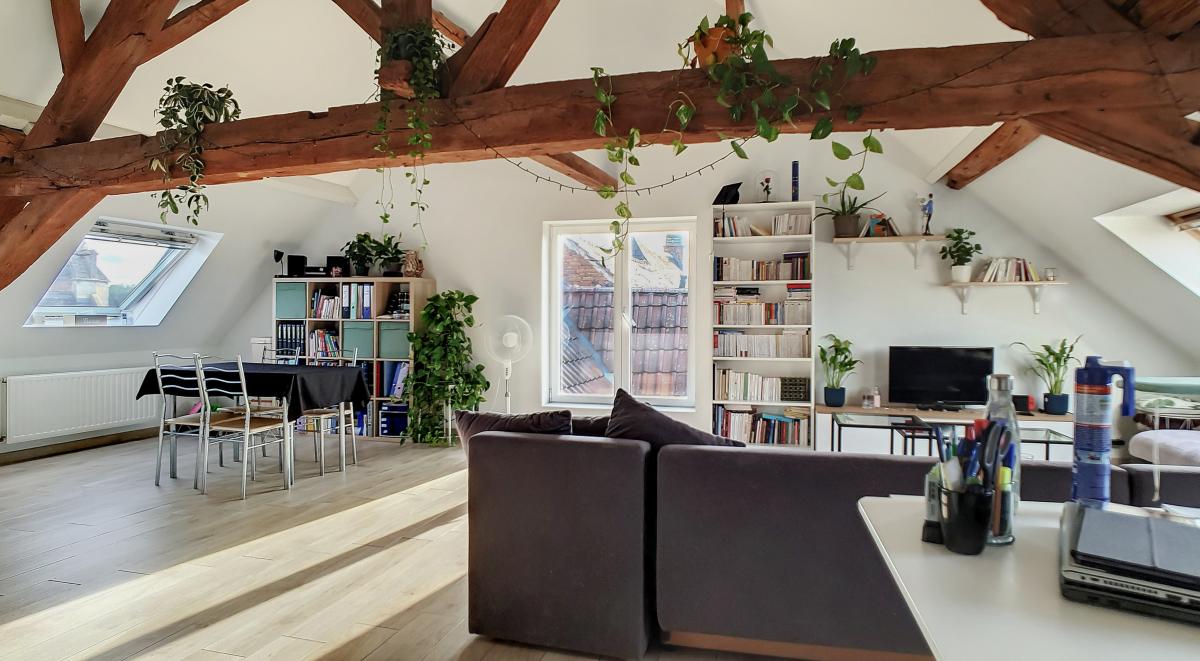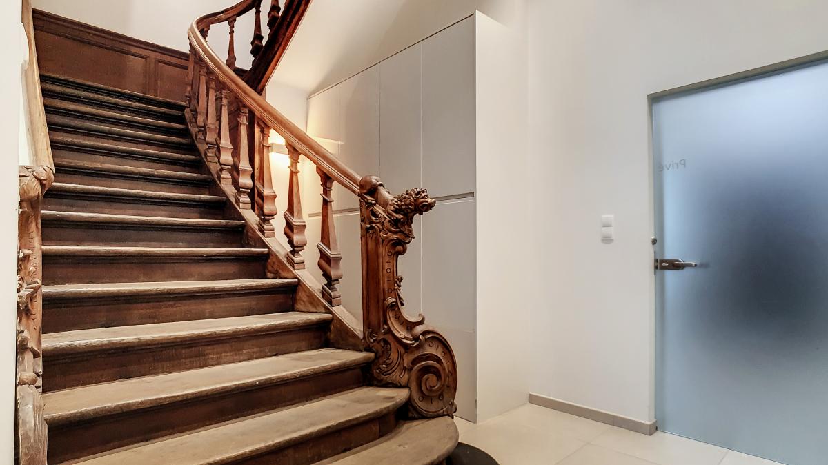 Idéalement situé en plein centre d’Enghien, sur la Place Pierre Delannoy, cet agréable appartement localisé au 3ème étage d’un magnifique bâtiment au cachet indéniable vous séduira à de nombreux égards. Ce nid douillet de +/- 96m² est doté d’un hall d’entrée, d’un grand séjour de +/-65m² avec cuisine ouverte entièrement équipée, d’un WC séparé, d’une chambre à coucher avec mezzanine et d’une salle de bains. En outre, une cave privative au sous-sol de l’immeuble vous offre une surface de stockage supplémentaire de près de 10m². Système de chauffage central au gaz de ville avec chaudière individuelle, double vitrage, système de ventilation, adoucisseur, stores aux velux, parlophone. Bonne performance énergétique : PEB en B ! Ascenseur dans l’immeuble. Loyer : 750 €/mois + 50€/mois de forfait pour les charges communes (comprenant l’électricité des parties communes, l’entretien des parties communes, l’entretien de l’ascenseur). Proximité directe des commerces, gare d’Enghien à +/-750m (train direct vers Bruxelles en +/-20min), autoroute A8/E429 à +/-2.7km (Bruxelles, Tournai, Lille), arrêt de bus à quelques mètres. En outre, le parc d’Enghien se trouvant à à +/-230m à pied, vous pourrez vous balader à votre guise sur ce site remarquable aux mosaïques de plans d’eau et paysages idylliques. Idéal pour les amateurs de jogging !