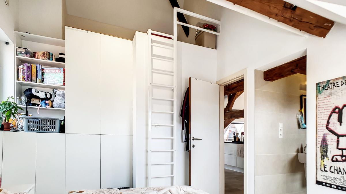 Hall d’entrée de +/-7.1m² Séjour avec cuisine ouverte de +/-65.3m² WC de +/-1m² Chambre de +/-11.4m² Mezzanine de +/-5.2m² Salle de bains de +/-6.6m²