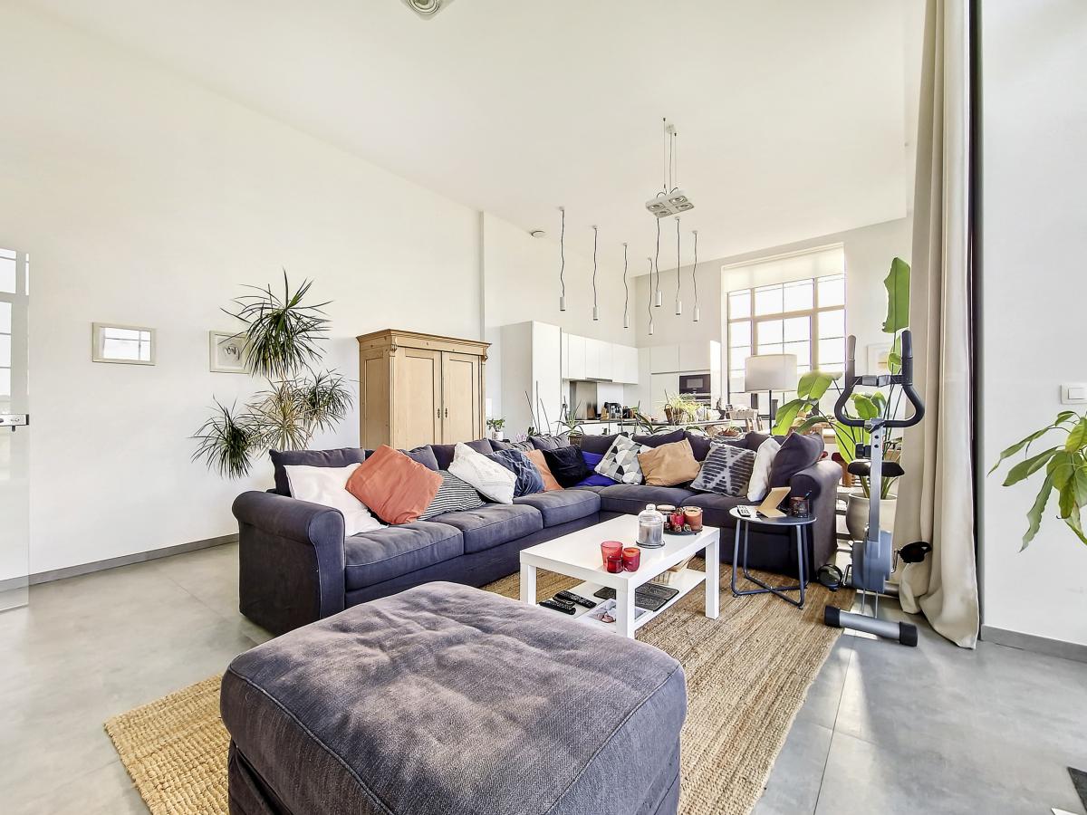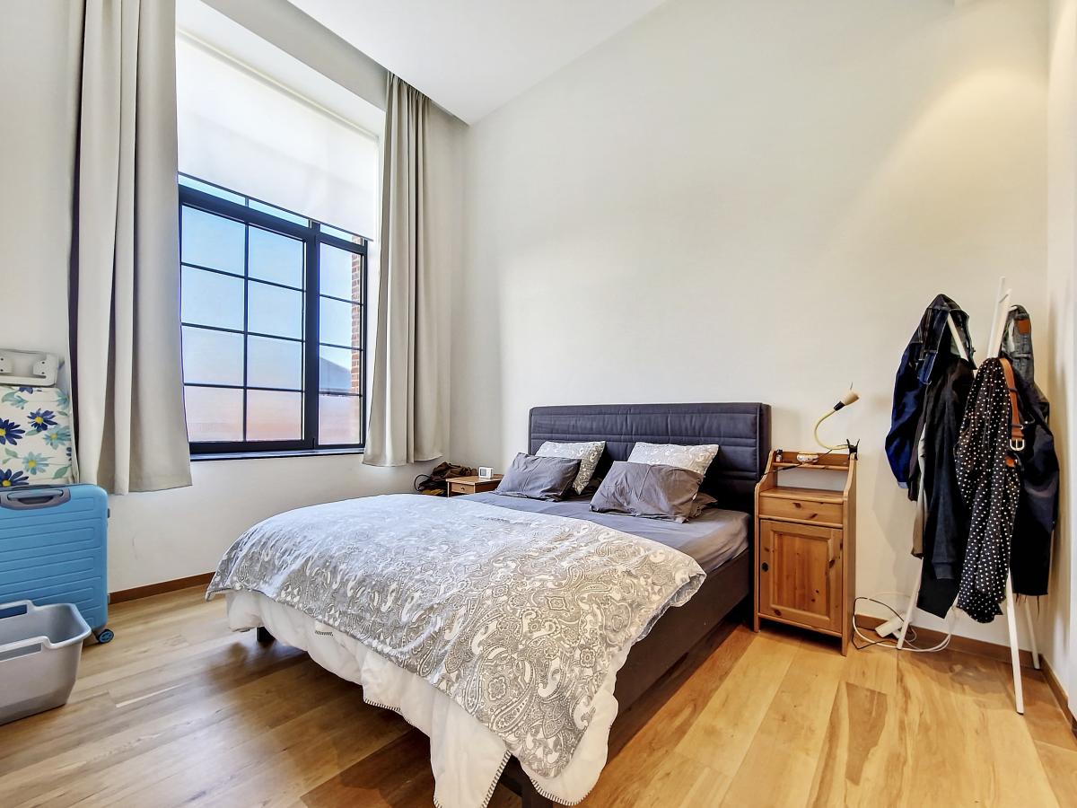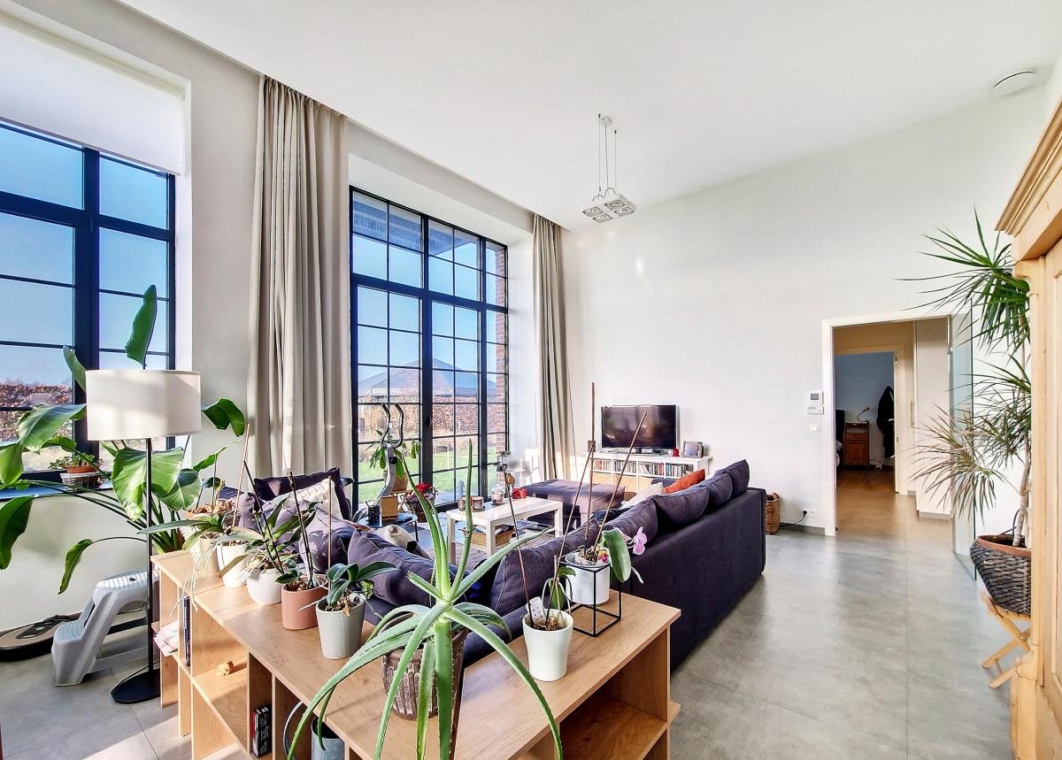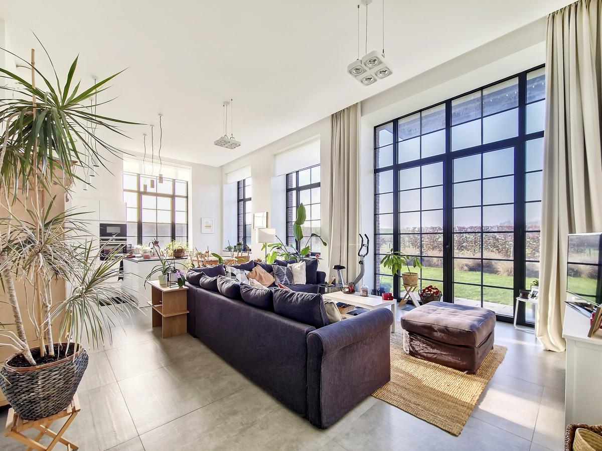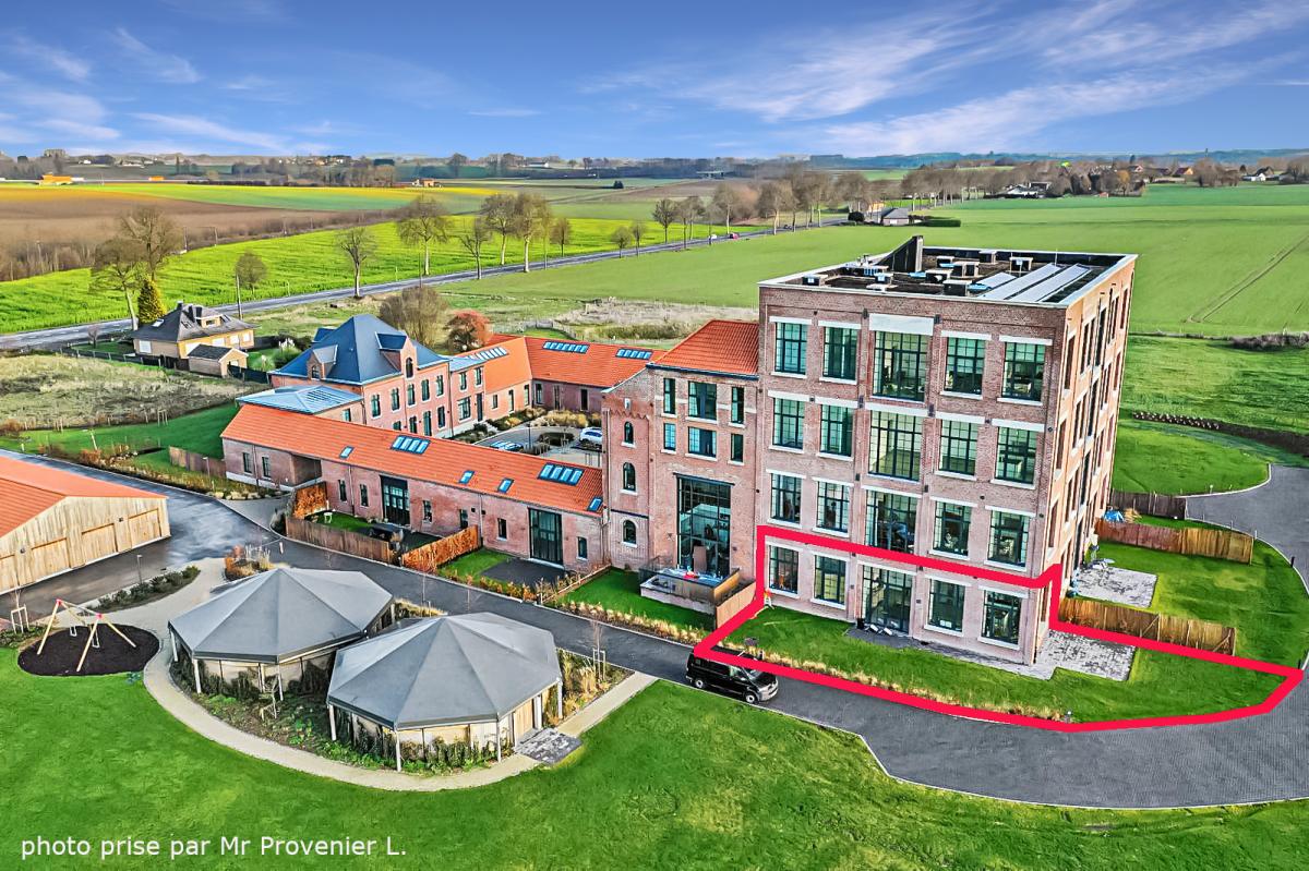 Situé à Marcq, au sein du site exceptionnel de « La Distillerie », ce superbe loft de standing ne pourra que vous séduire. Localisé au rez-de-chaussée de la tour surplombant le site, cet appartement de +/-91m² offre un grand hall de +/-14.2m², un splendide séjour de +/-47m² avec cuisine ouverte entièrement équipée, 2 chambres (de +/-12.8 et 9m²), un WC séparé, et une SDB (avec meuble-évier, radiateur porte-serviettes, baignoire pouvant être utilisée aussi en douche avec paroi en verre, WC, placard pour machine à laver). Le séjour donne sur une terrasse et un jardin privatifs bénéficiant d’une belle exposition S et S-O. Parking extérieur privatif. PEB en B. Chauffage par le sol. Double vitrage haut rendement. Système de ventilation double flux. Placards encastrés. Loyer : 900€/mois + 140€/mois de forfait pour [[éclairage des parties communes (éclairage extérieur, éclairage de la cage d'escalier, etc.), eau des citernes d'eau de pluie, poubelles molok, nettoyage des parties communes, entretien des abords, entretien de la chaudière, frais d'ascenseur]] + 100€/mois de provision pour la consommation privée en chauffage (chauffage de l’appartement et chauffage de l’eau) + possibilité de louer en sus un garage fermé privatif pour 50€/mois. Gare de Silly à +/-3.1km (train direct vers Bruxelles en +/-30min), autoroute E429 à +/-2.6km (Bruxelles, Tournai, Lille), arrêt de bus à 2 pas du site, nombreux commerces et écoles à quelques minutes en voiture.