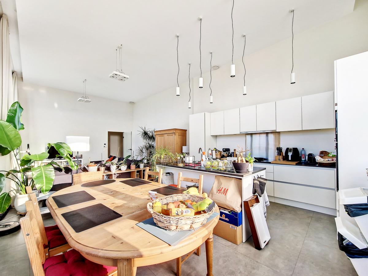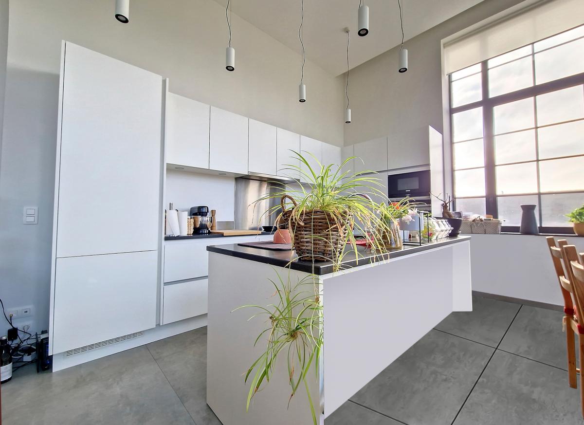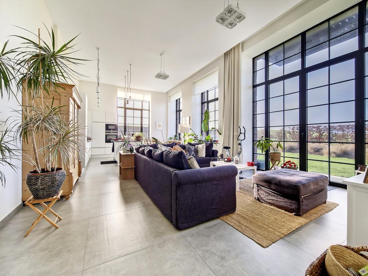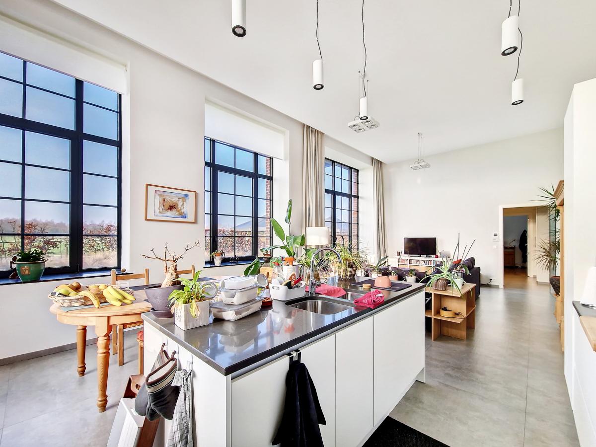 Situé à Marcq, au sein du site exceptionnel de « La Distillerie », ce superbe loft de standing ne pourra que vous séduire. Localisé au rez-de-chaussée de la tour surplombant le site, cet appartement de +/-91m² offre un grand hall de +/-14.2m², un splendide séjour de +/-47m² avec cuisine ouverte entièrement équipée, 2 chambres (de +/-12.8 et 9m²), un WC séparé, et une SDB (avec meuble-évier, radiateur porte-serviettes, baignoire pouvant être utilisée aussi en douche avec paroi en verre, WC, placard pour machine à laver). Le séjour donne sur une terrasse et un jardin privatifs bénéficiant d’une belle exposition S et S-O. Parking extérieur privatif. PEB en B. Chauffage par le sol. Double vitrage haut rendement. Système de ventilation double flux. Placards encastrés. Loyer : 900€/mois + 140€/mois de forfait pour [[éclairage des parties communes (éclairage extérieur, éclairage de la cage d'escalier, etc.), eau des citernes d'eau de pluie, poubelles molok, nettoyage des parties communes, entretien des abords, entretien de la chaudière, frais d'ascenseur]] + 100€/mois de provision pour la consommation privée en chauffage (chauffage de l’appartement et chauffage de l’eau) + possibilité de louer en sus un garage fermé privatif pour 50€/mois. Gare de Silly à +/-3.1km (train direct vers Bruxelles en +/-30min), autoroute E429 à +/-2.6km (Bruxelles, Tournai, Lille), arrêt de bus à 2 pas du site, nombreux commerces et écoles à quelques minutes en voiture.
