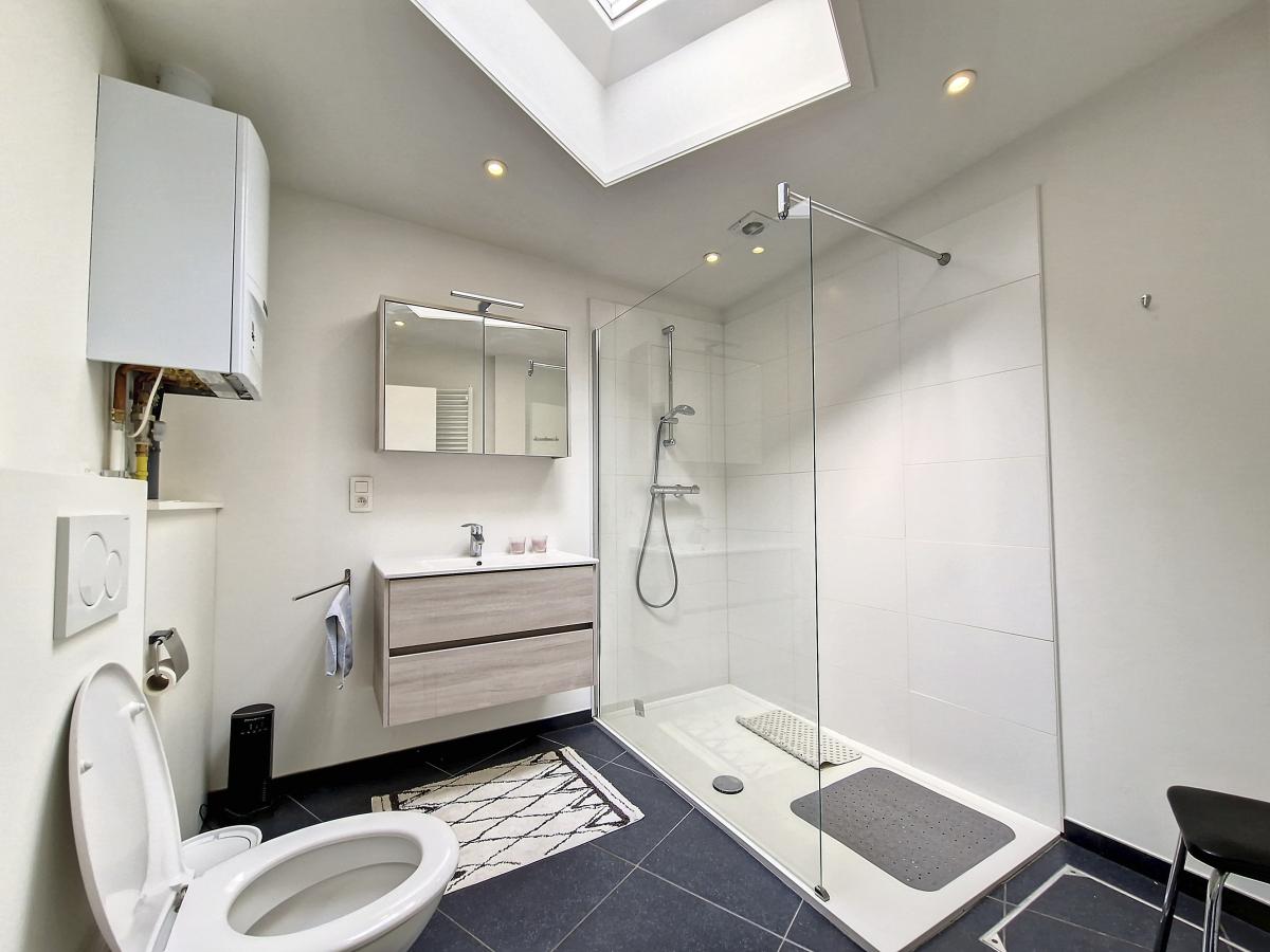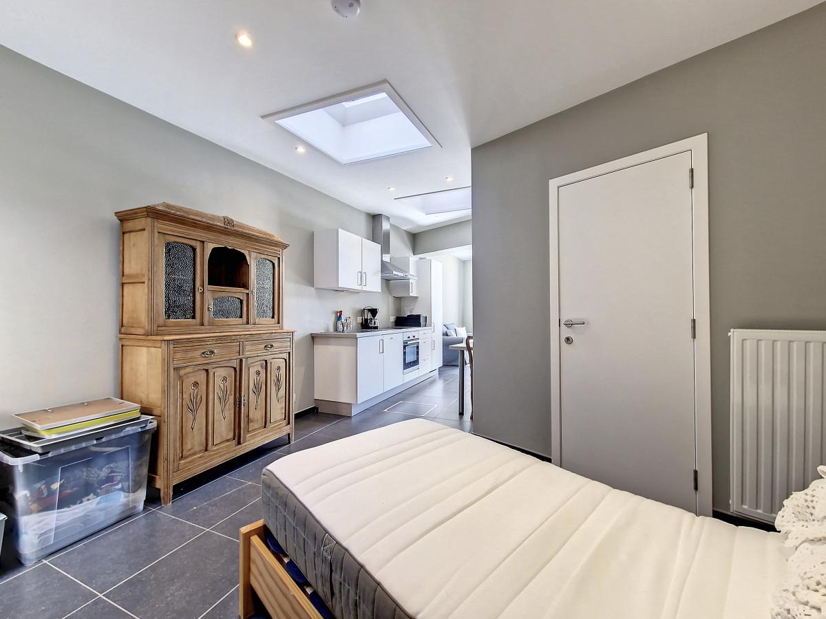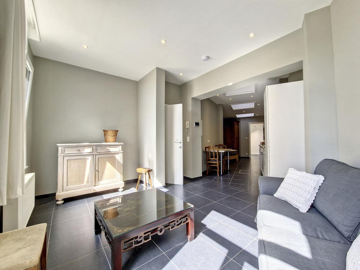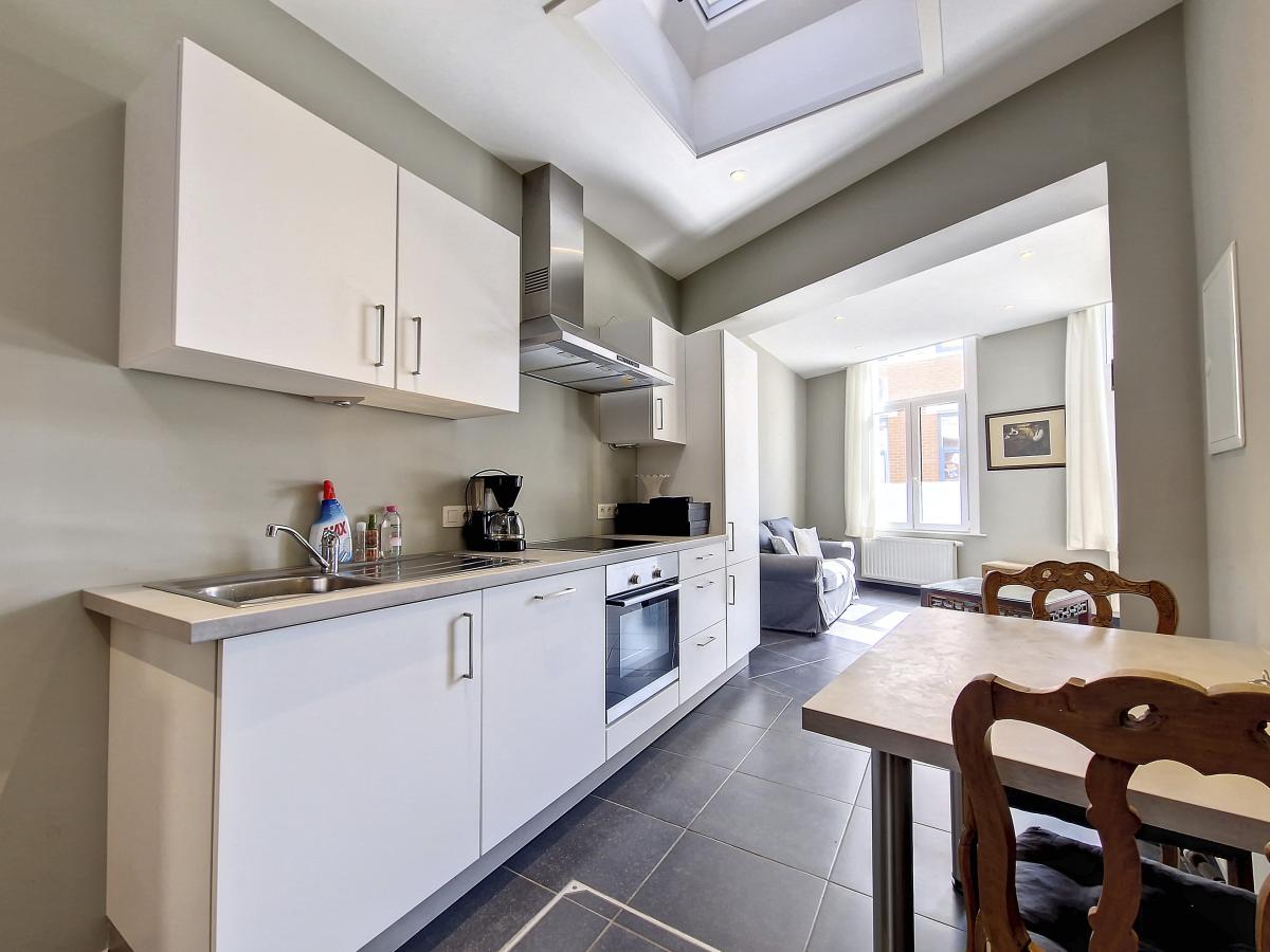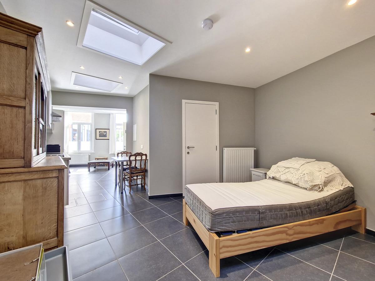 Très beau studio de +/-42m² situé au centre d’Ath, au rez-de-chaussée d’un sympathique petit immeuble de 2 appartements. Entièrement rénové en 2018, il se compose d’un salon, d’une cuisine équipée, d’une chambre, et d’une pièce d’eau avec douche italienne, meuble-évier et WC suspendu. Une petite cave privative au sous-sol de l’immeuble vient compléter le tout. Spots partout, système de chauffage central au gaz de ville avec chaudière individuelle à condensation, châssis PVC double vitrage, parlophone. Pas d'extérieur. Proximité de nombreuses commodités : rue commerçante à +/-50m, Grand’Place d’Ath à +/-250m à pied (avec magasins, restaurants, marché hebdomadaire), gare d’Ath à +/-350m à pied (train direct vers Bruxelles en +/-40min et train direct vers Tournai en +/-22min), plusieurs grandes surfaces dans un rayon de 2km, autoroute A8/E429 à +/-7.1km (Bruxelles-Tournai-Lille). L’Esplanade se trouvant à moins de 500m, vous pourrez tranquillement profiter du bon air à travers ce très bel espace vert à la fois ludique, sportif, et convivial. Ath, ville très dynamique, vous ravira par son folklore local, la convivialité de ses aménagements urbains, et les jolis décors végétaux la garnissant à la belle saison. Vous vous y sentirez bien. Loyer : 575 euros/mois.