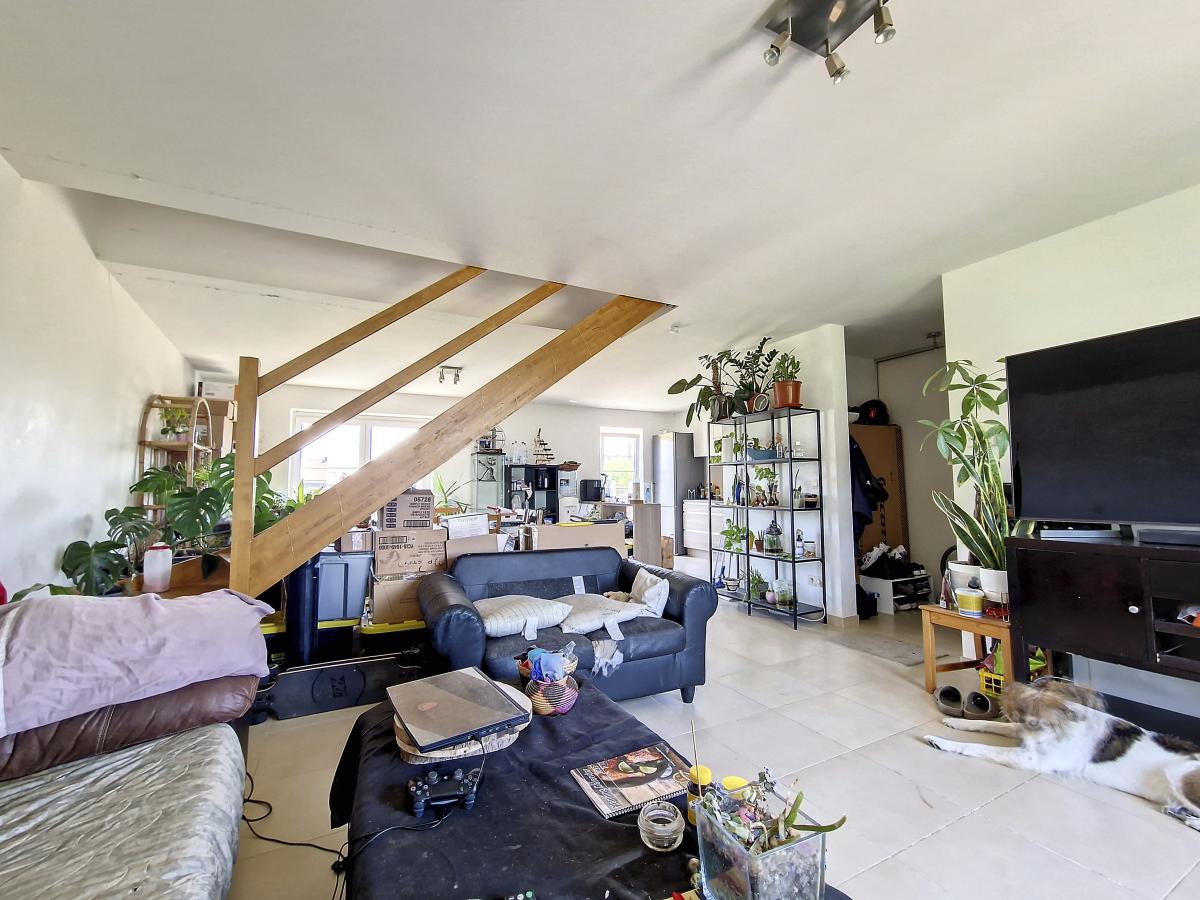 Situé à Brugelette, au 2ème étage d’une agréable résidence dans une petite rue calme et peu passante, cet appartement duplex de +/-83m² offre, en son 1er niveau, un hall d’entrée, un spacieux séjour de +/-44.9m²m² avec cuisine ouverte, ainsi qu’un balcon. L’étage du duplex se compose quant à lui d’un hall de nuit, de 2 chambres à coucher (de +/-16.8m² et 11.2m²), et d’une salle de bains. PEB en B. Revêtements des sols : carrelage. Système de chauffage central au gaz, châssis PVC double vitrage, système de ventilation. Loyer : 820€/mois. Pas de charges communes. Disponibilité du bien : août 2023. État des lieux par expert à frais partagés (50/50). Gare de Brugelette à +/-350m. Chaussée de Mons à +/-1.4km. Centre d’Ath à +/-8.6km. École communale de Brugelette à +/-550m.