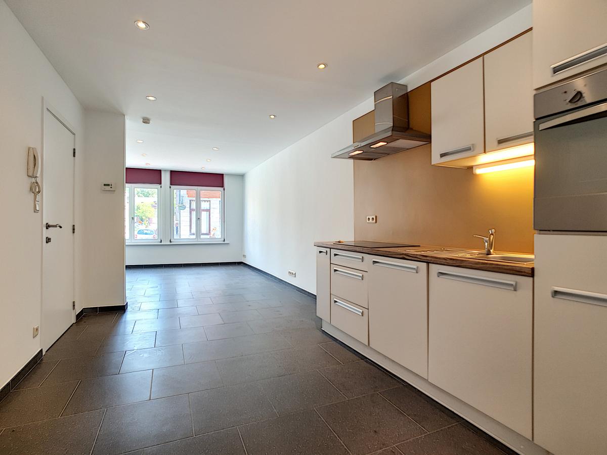 Très bel appartement 1 chambre situé au rez-de-chaussée d’une jolie résidence de 3 appartements en plein centre d’Ath, à moins de 100m de la Grand’Place. Libre immédiatement. Venant d’être entièrement repeint par des professionnels, cet agréable logement se compose d’un séjour de +/-27.7m² avec cuisine ouverte entièrement équipée (évier, égouttoir, taque vitro, hotte, frigo, four, lave-vaisselle), et d’une chambre avec salle d’eau intégrée de +/-12.5m² (avec douche, meuble-vasque, wc). Cave privative au sous-sol de la résidence, avec raccordement prévu pour une machine à laver. Aspect technique : système de chauffage central individuel au gaz de ville, double vitrage, stores manuels dans le séjour et électriques dans la salle d’eau, spots, compteurs individuels pour le gaz, l’eau et l’électricité. Loyer : 610€/mois + 15€/mois de forfait pour l’électricité des communs. Doté d’une localisation idéale, cet appartement vous permet d’accéder aisément à toutes les commodités, et de tout faire à pied ! Gare d’Ath à +/-1.1km (train direct vers Bruxelles en +/-40min et train direct vers Tournai en +/-22min), autoroute E429 à +/-5.7km (Bruxelles-Tournai-Lille), nombreux commerces à proximité. Marché hebdomadaire le jeudi en centre-ville ! En outre, l’Esplanade se trouvant à environ 350m, vous pourrez tranquillement profiter du bon air à travers ce très bel espace vert invitant à la détente.