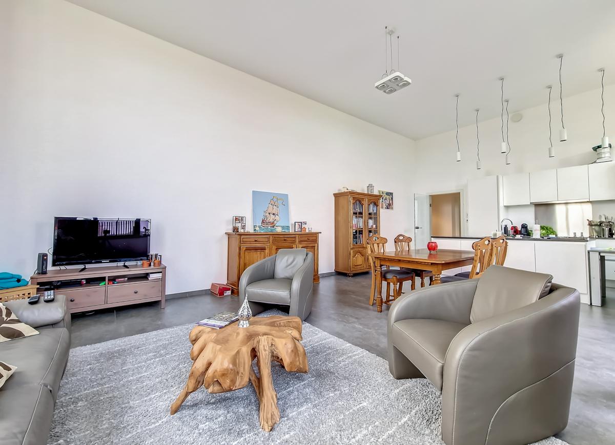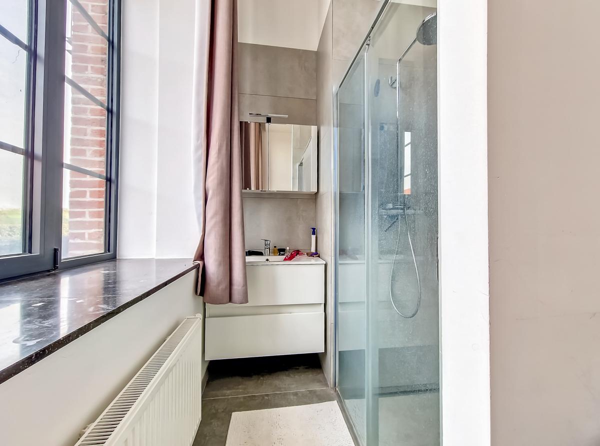 Situé à Marcq, au sein du site exceptionnel de « La Distillerie », ce superbe loft de standing vous séduira par sa luminosité, ses surfaces, et ses équipements. Localisé au rez-de-chaussée, il bénéficie d’une terrasse et d’un agréable jardin orientés S-S-E. D’une superficie de +/-115m², ce bien offre un grand hall d’entrée, un WC séparé, un séjour de +/- 45.7m² avec cuisine ouverte et ilot central, 3 chambres à coucher, une salle de bains, et une salle de douche. Parking extérieur privatif. PEB en B. Chauffage par le sol. Double vitrage haut rendement. Système de ventilation double flux. Placards encastrés. Parquet et carrelage au sol. Loyer : 1 100€/mois [appartement + emplacement de parking extérieur privatif] + 130€/mois de forfait [pour éclairage des parties communes (éclairage extérieur, éclairage de la cage d'escalier, etc.), eau des citernes d'eau de pluie, poubelles molok, nettoyage des parties communes, entretien des abords, entretien de la chaudière, frais d'ascenseur] + 100€/mois de provision pour la consommation privée en chauffage. Possibilité de louer en sus un garage fermé privatif avec porte électrique télécommandée pour 50€/mois. Gare de Silly à +/-3.1km (train direct vers Bruxelles en +/-30min), autoroute E429 à +/-2.6km (Bruxelles, Tournai, Lille), arrêt de bus à quelques mètres, et nombreuses commodités à proximité.